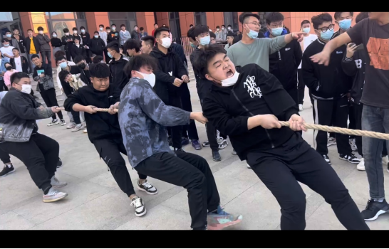 疫情封校期间,为了丰富学生们的课余文化生活,增进学生之间的交流,增强学生的凝聚力,培养学生的团队合作能力,拔河比赛于4月7日在校园内热烈开场。