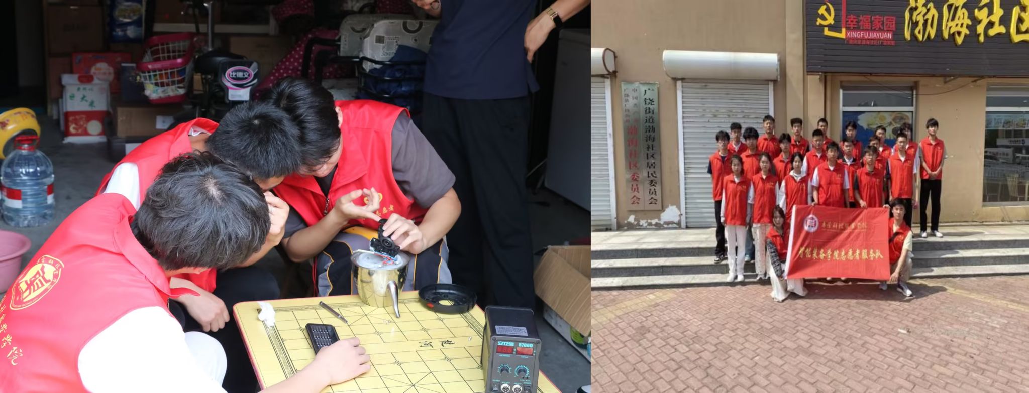 (4月27日,365英国上市官网志愿服务团队走入渤海社区,开展电器维修服务,紧跟专业特点,帮助社区居民维修水壶等电器)
