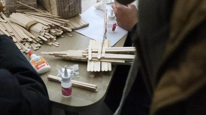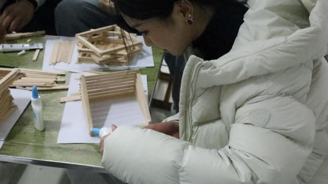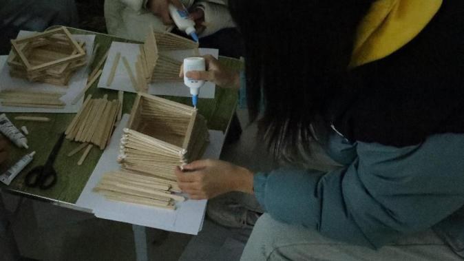 2024 年 11 月 28 日,365英国上市官网提前布置好现场,并准备了A4纸、雪糕棍、白乳胶、手锯等手工材料等待同学们的到来,同学们在活动开始前陆续进场进行活动签到,并耐心听取主持人详细的讲解活动规则。