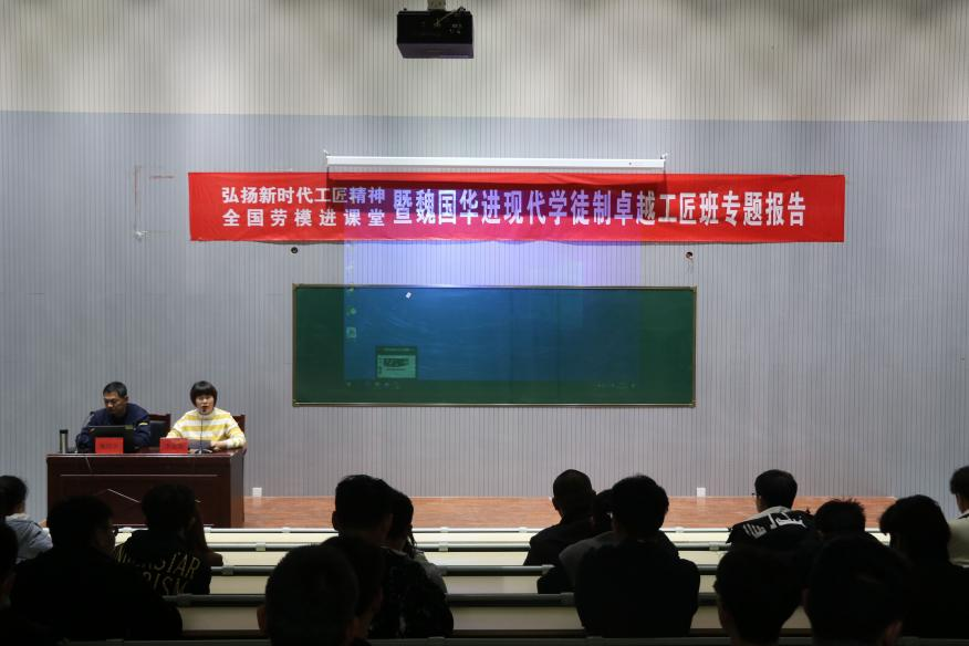 会议上,魏国华先生通过结合自己的大学生活和多年的工作经历,与大家分享了由上进心、自信心、自尊心、恒心“四心”而汇聚成的匠心,充分展现了劳动模范的爱岗敬业的理想追求,坚持不懈的创新精神,甘于奉献的优秀品德。现场学生兴致高涨,纷纷提出问题,将报告会的学习氛围推向了高潮,这次报告会使学生对自己所学专业的未来发展有了更深层次的信心。
