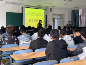 北交知行教育科技有限公司刘老师表达了与同学们一起办好这一新专业的期望,她向同学们阐述了新能源专业的现状,从市场需求、发展机遇以及师资力量展示了新能源专业的蓬勃生机;他还介绍了目前专业的办学理念,以及实现专业培养目标的各项保障。