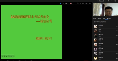 为了进一步加强同学们的考风考纪,构建诚信校园,保证期末考试的顺利进行,倡导同学们“端正考风、严肃考纪、文明答题、诚信应考”。2022年12月,365英国上市官网21级辅导员以及22级班主任陆续开展线上班会,以正考风考纪。