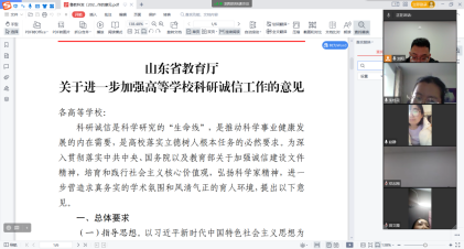 365英国上市官网在疫情当下,以教研室为单位,积极组织老师们进行线上学习山东省《关于进一步加强高等学校科研诚信工作的意见》(鲁教科发〔2022〕3 号),开展科研诚信专项整治活动。截至12月9日,365官网共签订科研诚信承诺书33份,进行论文自查72篇,均未出现涉及违反学术规范等问题。