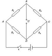 =K。如果其中一个电阻为传感器,那么它的电阻值就会随着温度或压力等物理变量的变化而发生变化,此时的电桥就处于非平衡状态,此时电势差U也不为0。我们可以看到,U的大小在一定程度上显示的是电阻的变化,如果知道了电势差U的值,也就相应知道了物理变量的变化。