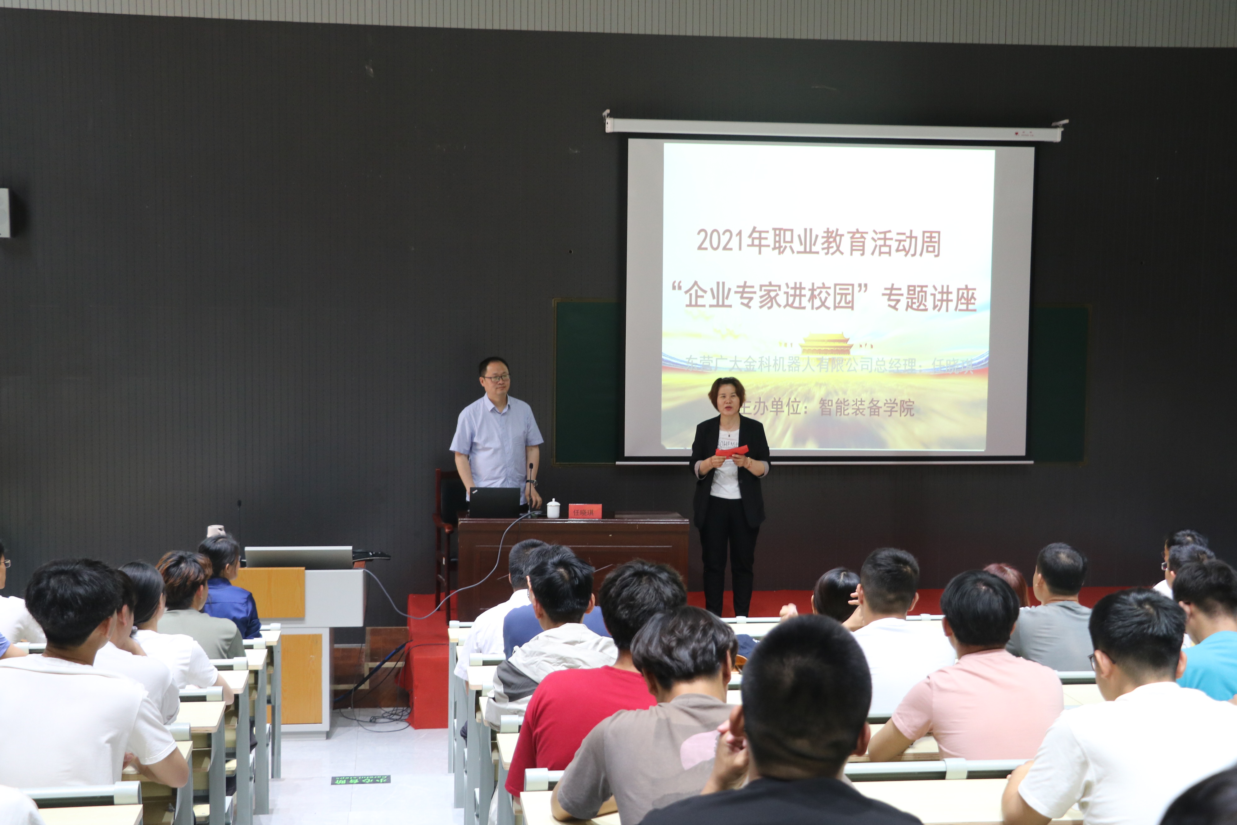 在建党一百周年之际,365英国上市官网举办2021年职业教育活动周“企业专家校园活动”。5月26日,特别邀请企业专家任晓琪总经理来校做了关于“汽车轻量化技术及先进成形工艺的国产化历程”的讲座。