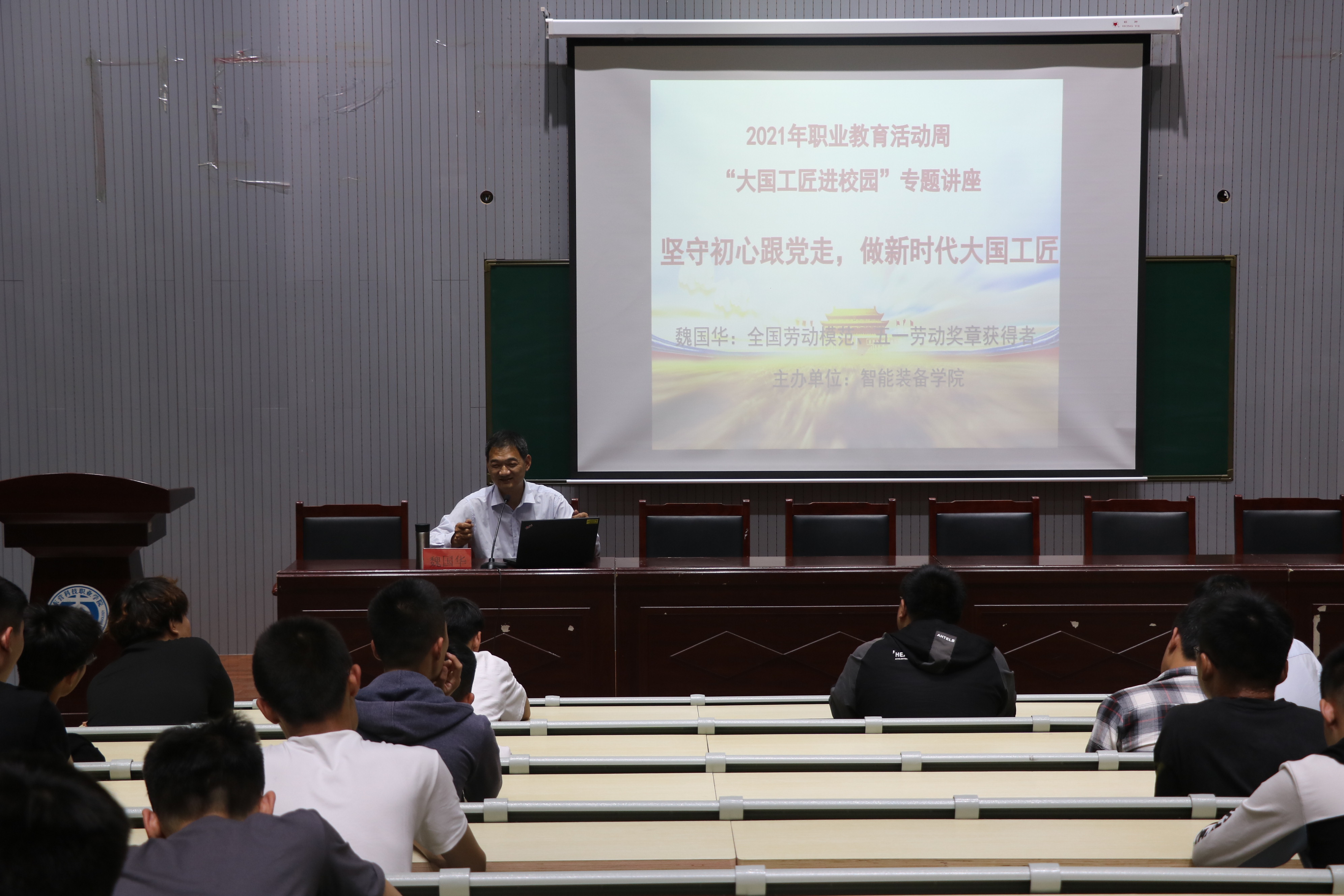 6月1日,365英国上市官网邀请“全国劳模,五一劳动奖章获得者”魏国华给师生作“坚守初心跟党走、做新时代大国工匠”的主题报告会。