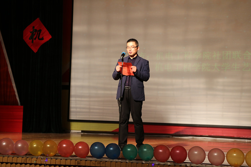 四位青春洋溢的主持人用他们饱含热情的语调为晚会讲述了一段精彩的开场白,并介绍了到场的各位领导与嘉宾。伴随热烈的掌声,机电工程学院的安丰金院长为晚会致辞,表达了对大家的鼓励和期望,听了领导的鼓励,晚会现场群情激昂,掌声雷动。紧接着各种节目轮番登场,异彩纷呈,魅力四射。