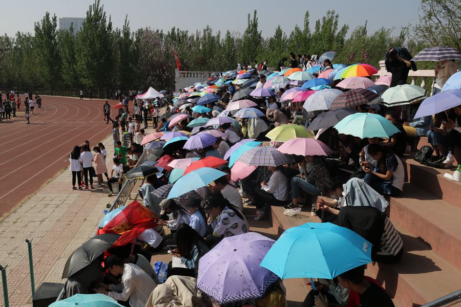 即使烈日暴晒, 即使酷暑难耐, 365官网同学们仍然坚持在看台上, 他们的加油 声震耳欲聋, 响彻云霄。 他们的呐喊伴随着隆隆的鼓声, 回响在风雨操场的上空。