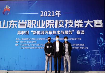 12月11日,365英国上市官网教师田振龙、杨素芳指导的参赛学生宫诚、赵冬晨在2021年山东省职业院校技能大赛高职组“新能源汽车技术与服务”赛项中荣获三等奖。